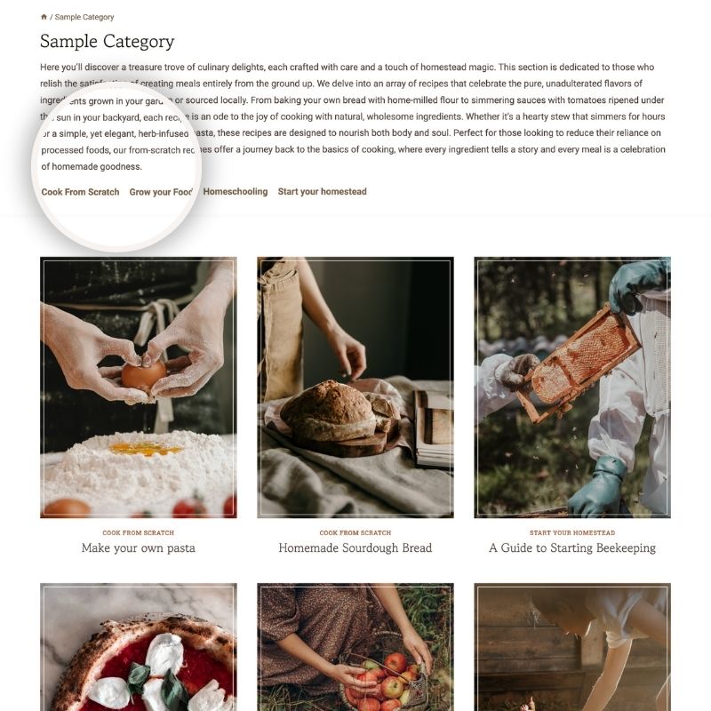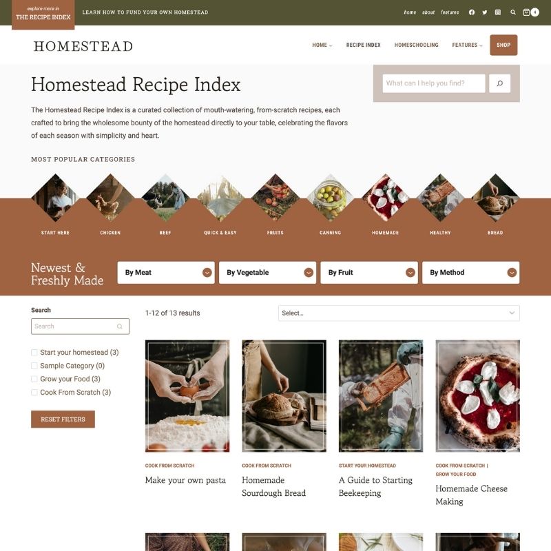 While the Homestead theme and its demo content are steeped in the homesteading lifestyle, don’t let the name limit your imagination! This theme is incredibly versatile and can be seamlessly adapted to suit ANY NICHE of bloggers. Whether you’re sharing gourmet recipes, travel adventures, or lifestyle tips, the Homestead theme is designed to be fully customizable.