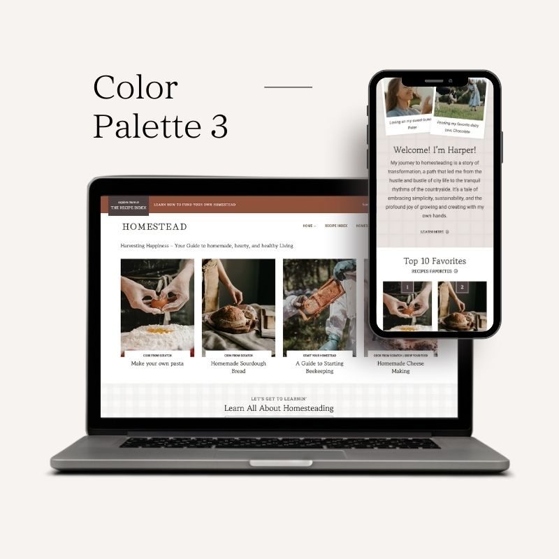 Your theme will install with 3 perfectly coordinated custom color palettes, so you can choose the feel-good vibes that work best for your brand. The font pairing in the Homestead theme uses free Google Fonts that are easy to read, even on mobile.